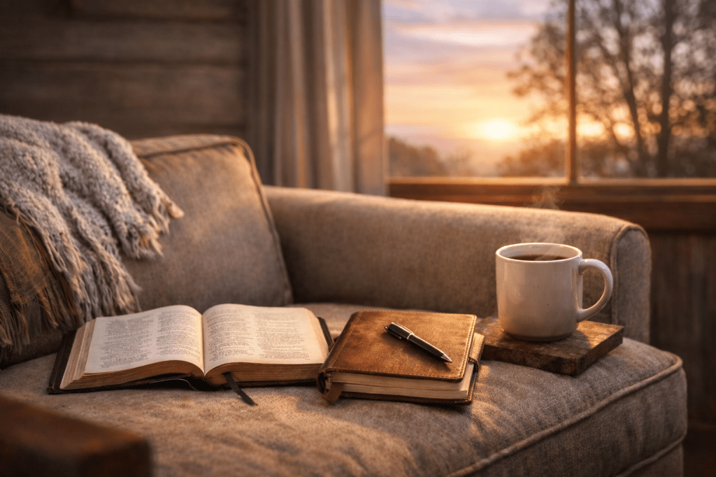 It’s the daily discipline of reminding myself of God’s faithfulness. Every morning when I come to the couch in the loft at daybreak to be alone with Jesus, I’m returning to my rest, a much deeper rest that I could get if I hit “snooze” on the alarm clock. Placing the Lord’s goodness back in the rightful place, if it has shifted behind other concerns in the past 24 hours. Pushing the “reset” button, back to the “factory settings”…recalibrating to this truth: God is good, and I am his.