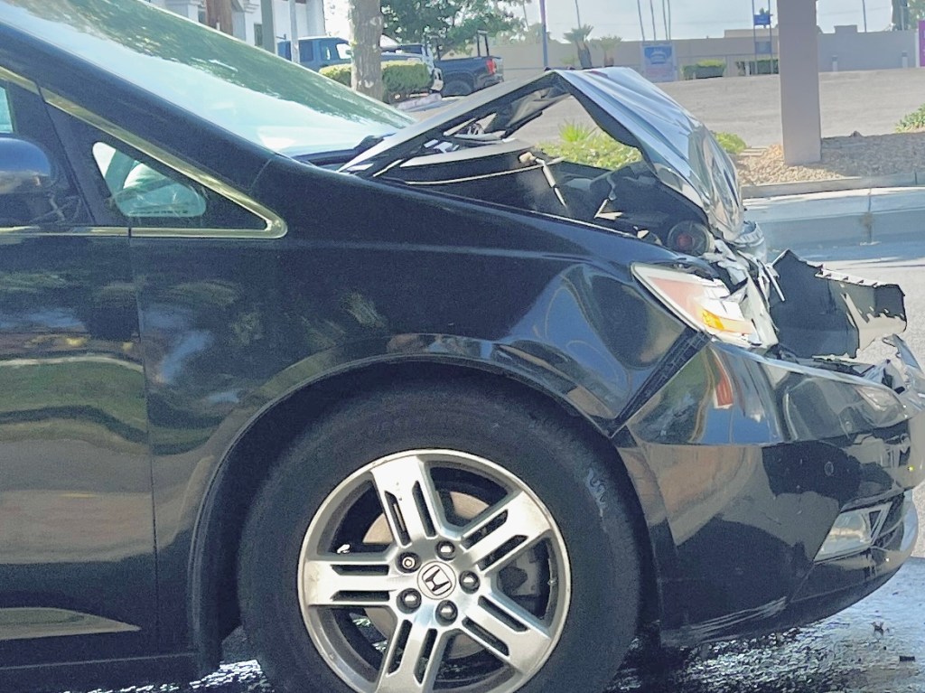 There’s some smoke coming up from the vehicle, some liquid dripping from it, and a burning deep in my chest. Both arms feel like lead.