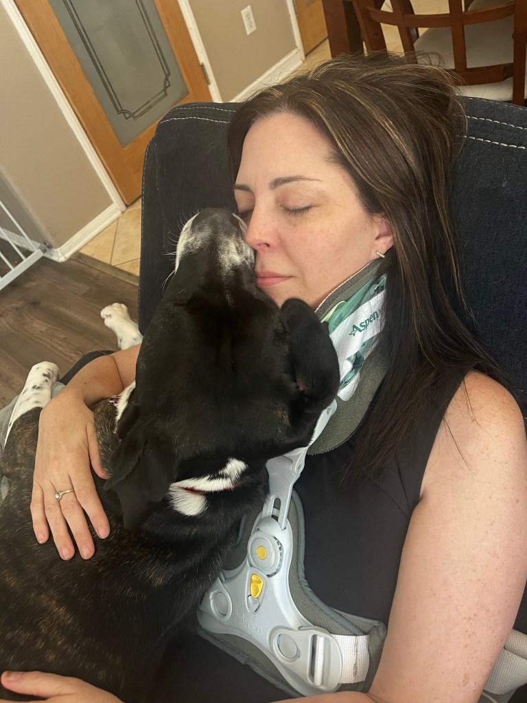 Specifically, I fractured the T1 vertebra. Treatment: 8-12 weeks in a Cervico-Thoracic Orthosis (CTO) brace to stabilize the bone as it heals. No driving, no working, no lifting anything over five pounds. I was basically put in “time out” during the busiest time of the year. The holiday season of 2025 was spend mostly on the couch, being loved and cared for by my amazing family and community.